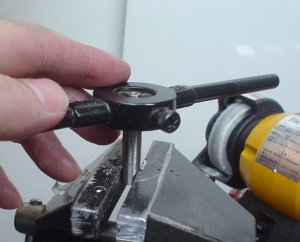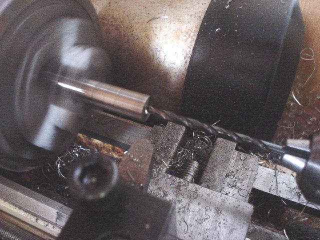 チタンと黒檀のボールペン製作工程 P.1(以下の手順は、本来の道具の使い方と異なる部分もあります。実施の際は個人の責任で安全に充分注意を払ってください。)右の参考文献エイ出版社「ステーショナリーマガジンNo001」六耀社「日本産万年筆型録」を 見ながらイメージを固めスケッチする。 ![]() ![]() ![]() 今回は、シルバーとブラックでシャープなイメージを狙い黒檀とチタンを使うこととする。替え芯はパーカーのリフィル(全長98mm)を前提に設計。 チタンは軽く(比重4.5 鉄の60%)強くさびない。地球上に広く分布。他の物質と結合する性質が非常に高い金属で すぐに酸素と結びつき表面にナノミリの薄い透明な酸化チタンを 形成する。この酸化チタンは非常に丈夫で 常温大気中では非常に安定した状態を保つため 肌に触れてもイオン化せずアレルギーを起こさない。そのため最近はアクセサリー材料としても多用される。 今回は加工性を考慮して純チタンTB340を使用。 設計ツールはJW-CAD FOR WINDOWS。2D設計。 ![]() 黒檀丸棒は東急ハンズやホームセンターで調達可能。 黒檀丸棒はパイプ状のものも販売されているが心円度が低く好ましくない。 材料についてはMATERIALの章参照。 チタン丸棒、φ15X500、φ10X500、φ6X500を購入。パーカーの替え芯スタンダード、 クリップ動作用のスプリング、SUS M1.7ねじを購入。 ![]() チタン丸棒をステンレス用の金ノコ(材質SKH-51 高速度工具鋼)でカットする。 炭素鋼の金ノコでは一瞬で歯がなくなってしまう。 SKH-51はハイス鋼の中で、最も広く使用されている材料の1つ。 φ15の丸棒で5分程度でカット可能だが、かなり疲れる。最も体力を必要とする工程。 ![]() φ10の丸棒から削りだし、形状を出したところでM8ねじ加工を行う。 全体を外形φ8に加工後、φ2.6の穴を加工。特に注意点はなし。 ワークを芯押し台側にセットしなおし、M8ダイスを三爪チャックにセットして、手で回しながら 最初の1,2山のみねじ加工する。ダイスが滑って回りだすのでこの状態でねじ加工を 完了するのは不可能。これは次の工程で、手で芯を合わせやすいようにする目的だけ。(本来はダイスホルダーを芯押し台側、ワークをチャック側にセットする) ワークの後端にバイスにセットする面加工を施したあと、バイスにセットし手でねじ切りを完了する。 (傷を避けるためバイスの口金に銅板を当て締める。) ここではバイスがアルミ製なので無で実施。 内部の穴φ7をあけるためにドリルを準備。騒音を抑え、安全に作業する ために時間はかかるが徐々に径を上げて行く。 外形5mm、6mm、6.5mm、7mmとする。ドリルはNACHIの汎用鉄工ドリル。 芯押し台のストロークで深さを管理する。 先端にツールマークがあり光沢も低いので別途仕上げるが、一旦出来上がり。 ![]() |