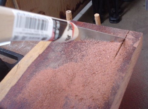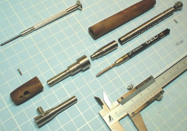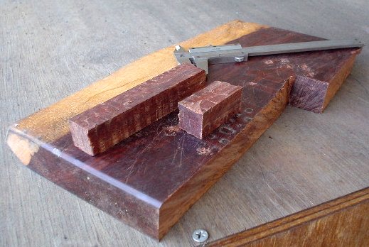 チタンと紫檀(シタン)のボールペン(2005)製作工程![]() 今回は趣を変えるため赤い色の紫檀を使う。マメ科の広葉樹。産地によって名前が異なる。 ブラジル産のブラジリアンローズウッド、中米産のココボロ、 東南アジア産のイーストインディアンローズウッド。タイ産の本紫檀。など。 この板は山根木材の木切れ市場で見つけた端材(?)のため産地は不明。 本来のローズウッドとして知られるブラジリアンローズウッドは絶滅危惧種に指定され輸出入は禁止。その他原産国各国も輸出制限をしているとかで 近い将来入手は困難になると言われている。大事に使いましょう。 ![]() カットするとローズウッドの由来のバラの様な香りがたつ。 ![]() 非常に硬いのでとてもカットが難しいが、目が荒い引回し鋸でカットするとやや効率的に切れる。 ※引回し鋸・・本来は板を曲線状に切ったりする鋸。 ![]() フライスで6面加工。削りが多くてややもったいない。 ![]() 軸部分とキャップ部分を準備。 ![]() 比重は推定1.02。このように水に沈む。持った感じは重厚でとても良い。 ![]() |