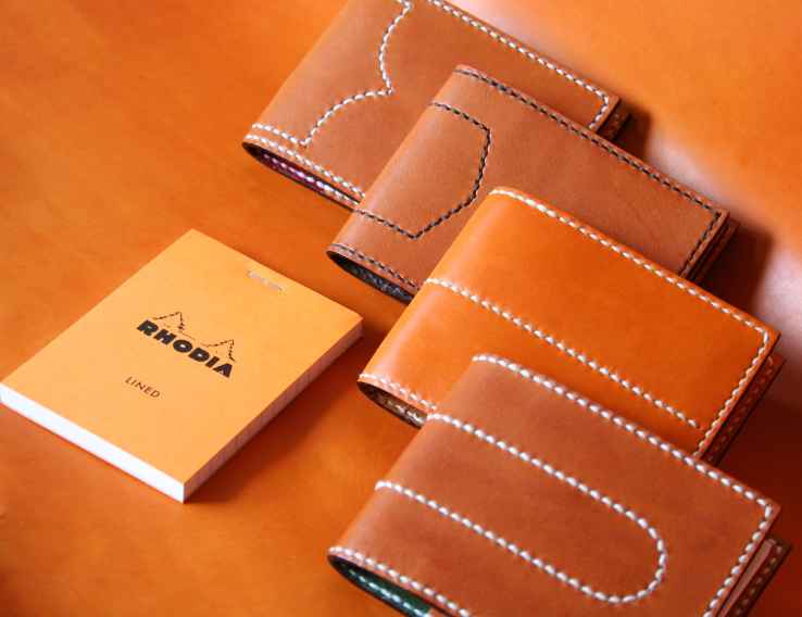 オレンジ色は同じくイタリア製のブッテーロと呼ばれるオイルレザーを使用しています。