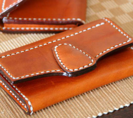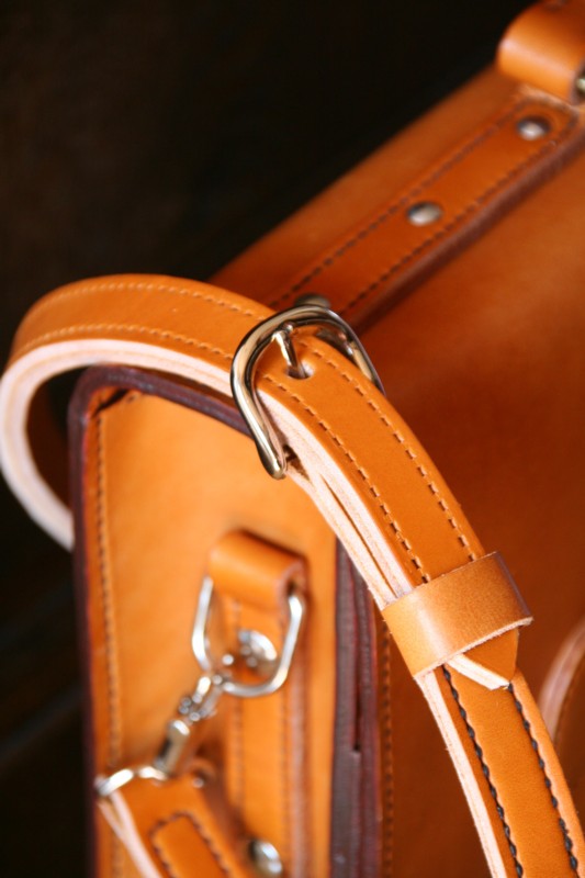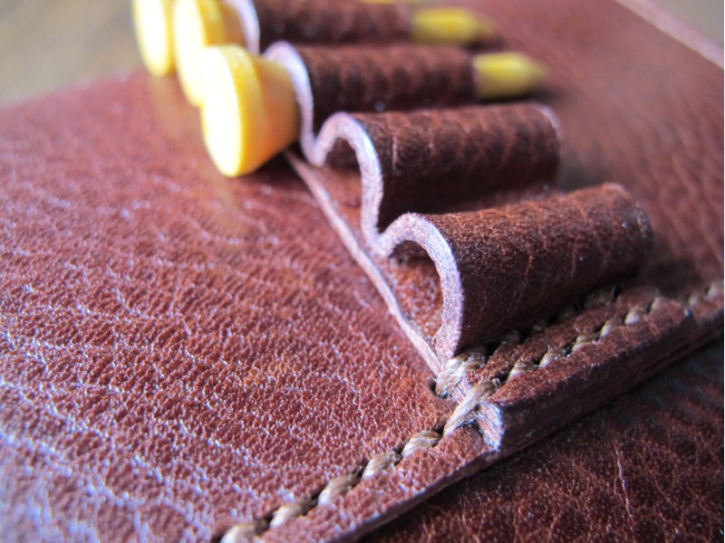 良い手触りとほどよい弾力感を持ちます。しなやかで伸びのある牛のショルダー部分の革です。装飾のため多めにステッチを入れています。(2009/7/21)