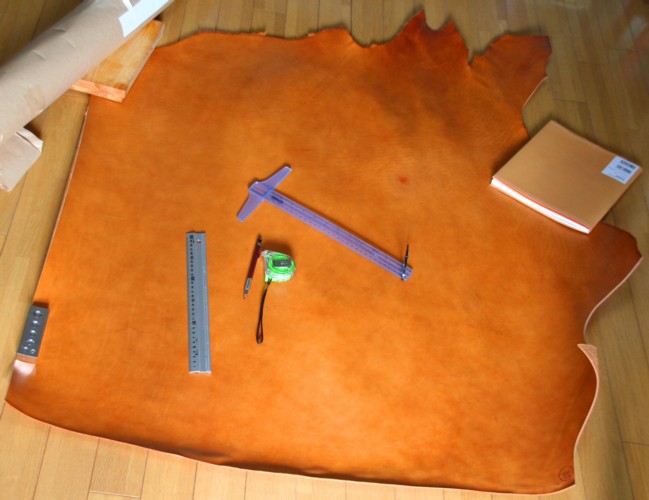 材料はオイルレザー約70dm2X肉厚2.5mmを購入。(2008/12/26)