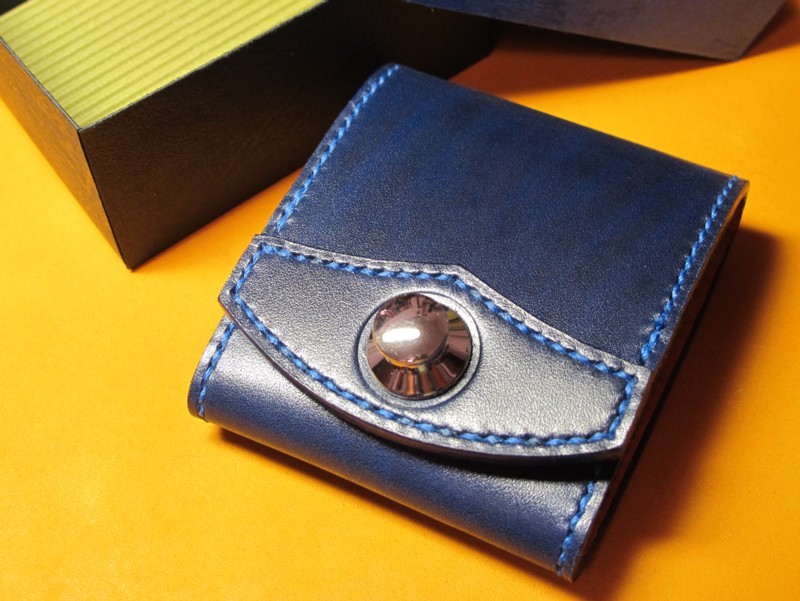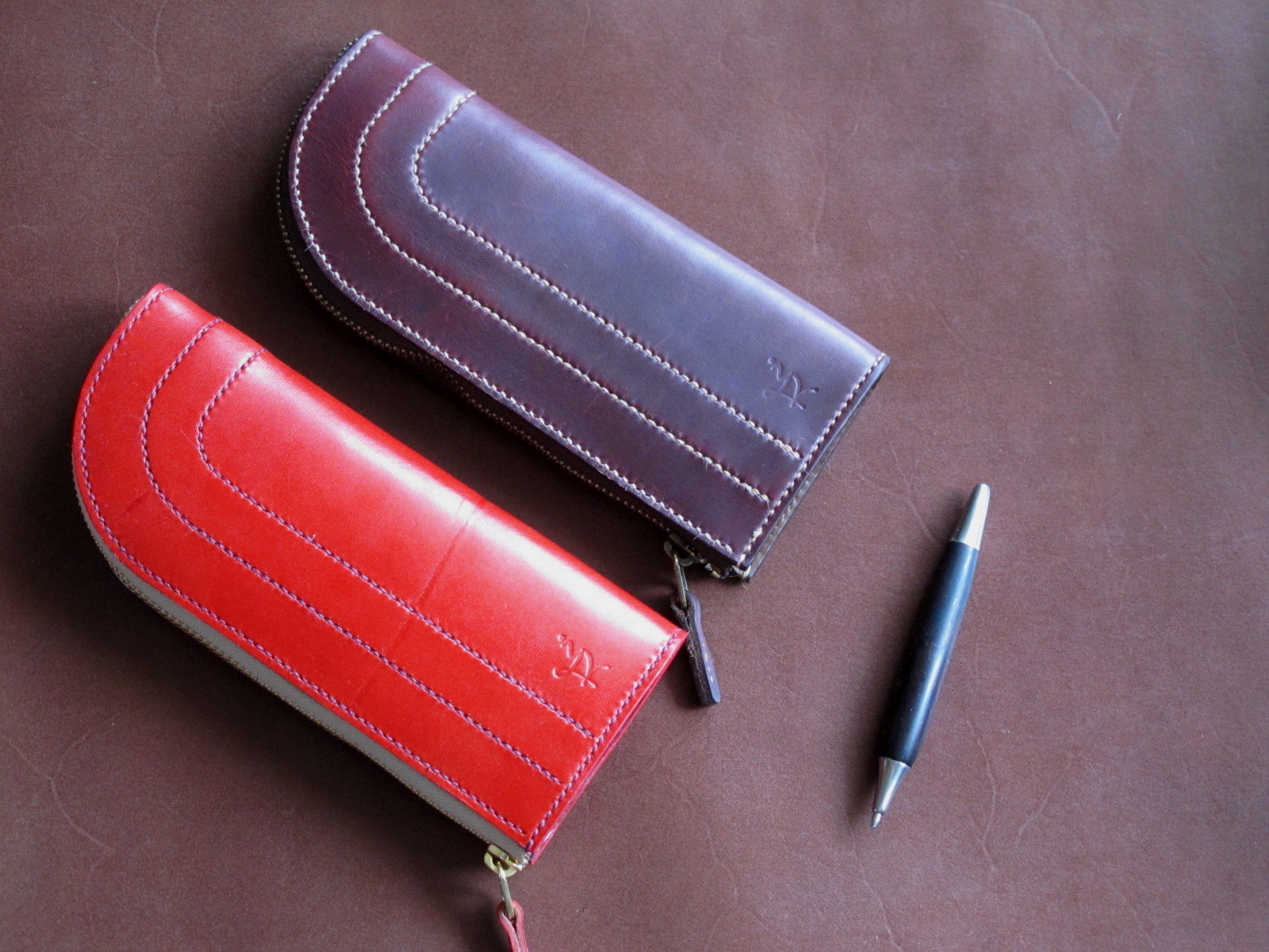 宝石のような革と良く表現されます。裏は飴豚を使用。コバの仕上げはアクリル塗料”リキテックス”を使用しています。