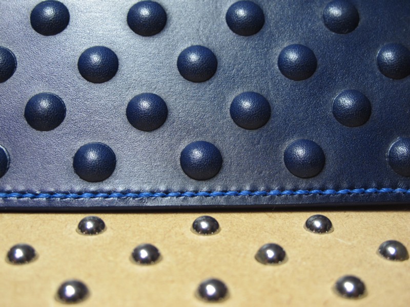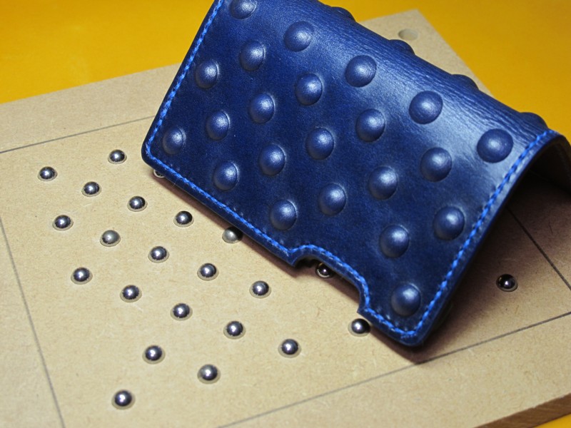 それに、滑り止めとして型押し加工でブリスターの模様を施し、モダンな雰囲気を狙いました。φ3mmの鋼球で転写した後、