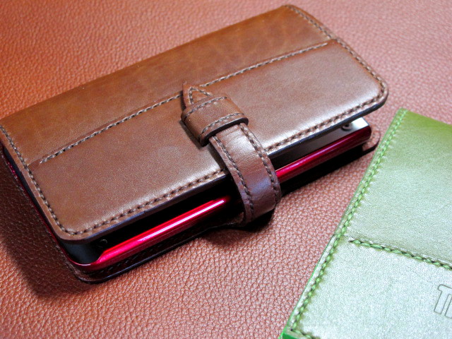 サドルレザーを使ったエクスペリア用カバーです。市販のハードケースを活用しますのでアイフォンも対応可能です。